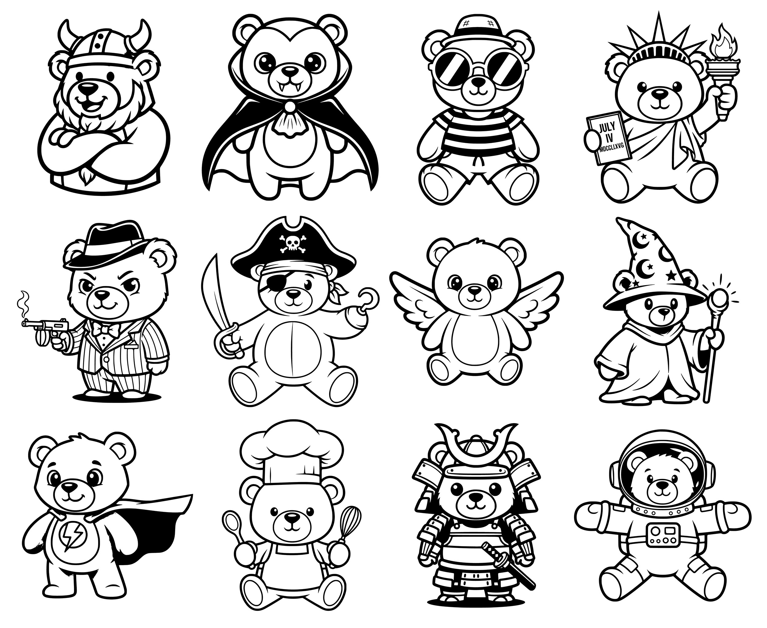 I've seen people use these for everything. T shirt designs, coffee mugs, nursery decorations, party favors. That astronaut bear? Perfect for a space themed birthday. The chef bear? Great for kitchen towels or apron designs.